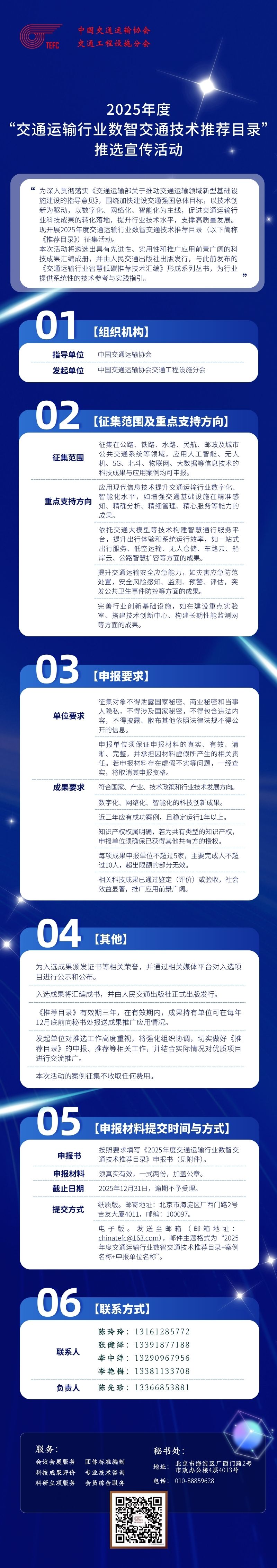 | 您的当前位置: | 首页 | > 成果展示 | > 案例征集 | 关于开展 2025 年度“交通运输行业数智交通技术推荐目录”推选宣传活动的通知 |